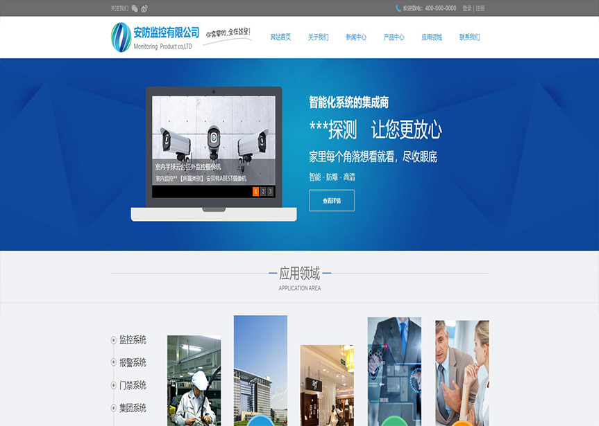 模板名稱:(帶手機(jī)版數(shù)據(jù)同步)自適應(yīng)安防監(jiān)控器材類藍(lán)色網(wǎng)站模板