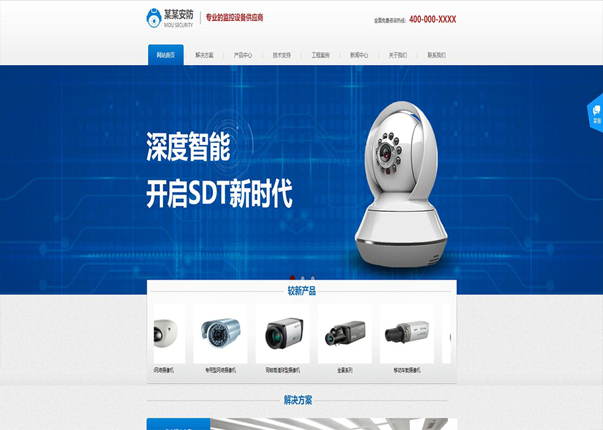 模板名稱(chēng):(帶手機(jī)版數(shù)據(jù)同步)自適應(yīng)安防監(jiān)控器材類(lèi)藍(lán)色網(wǎng)站模板