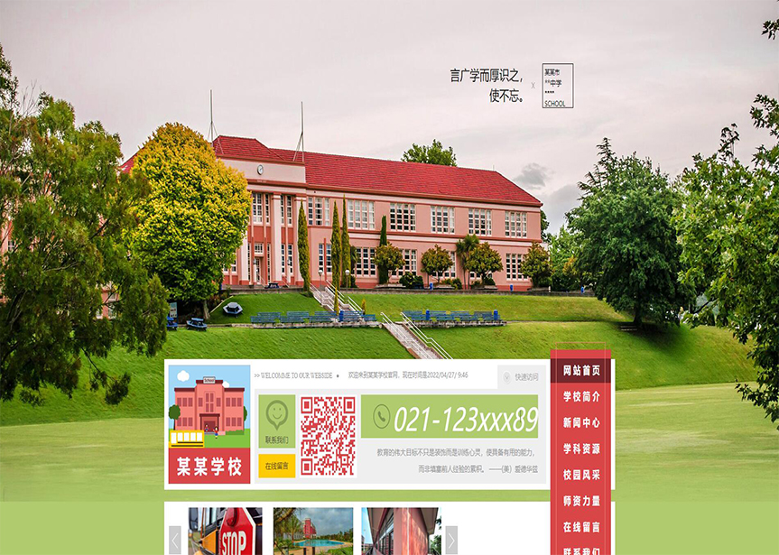 模板名稱:(帶手機版數(shù)據(jù)同步)自適應學校類綠色網站模板