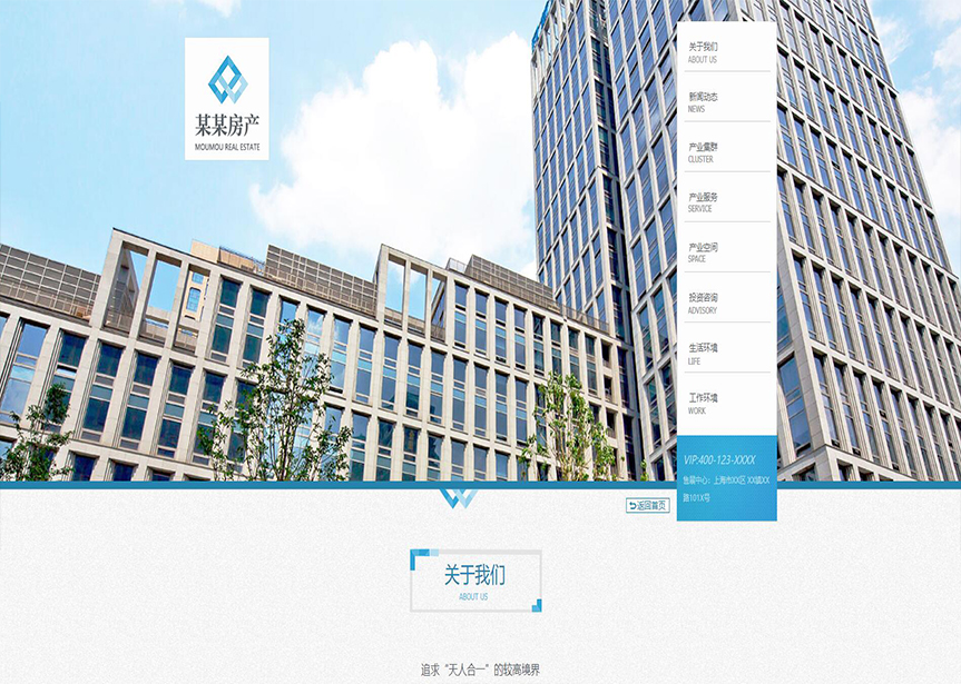 模板名稱:(帶手機版數(shù)據(jù)同步)自適應房地產(chǎn)藍色通用網(wǎng)站模板