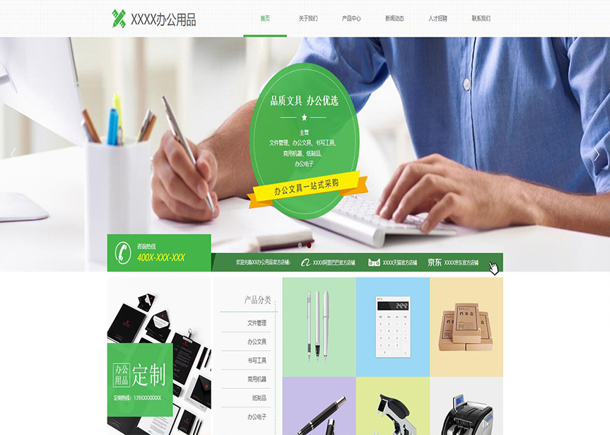 模板名稱:(帶手機版數(shù)據(jù)同步)自適應(yīng)辦公用品類綠色通用網(wǎng)站模板
