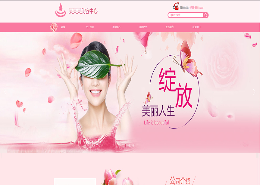 模板名稱:(帶手機版數據同步)自適應美容護膚類粉色通用網站模板