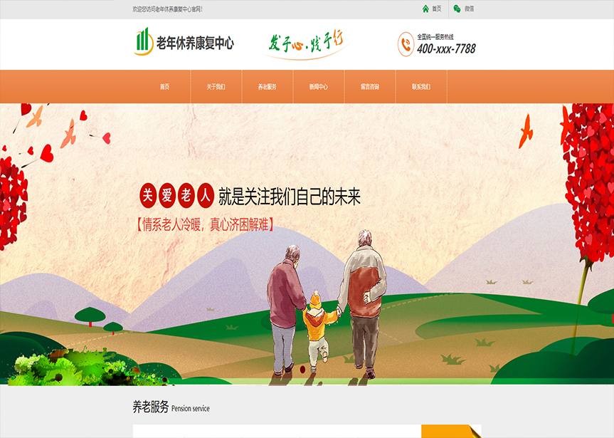 模板名稱:(帶手機版數(shù)據(jù)同步)自適應其他類老年康復中心通用網(wǎng)站模板