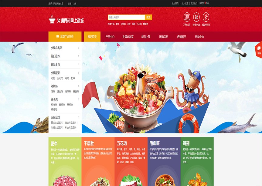 模板名稱:(帶手機版數(shù)據(jù)同步)自適應商城類火鍋食材商城通用網(wǎng)站模板