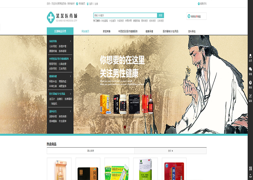 網站模板名稱:(帶手機版數(shù)據(jù)同步)自適應商城類醫(yī)藥商城通用網站模板