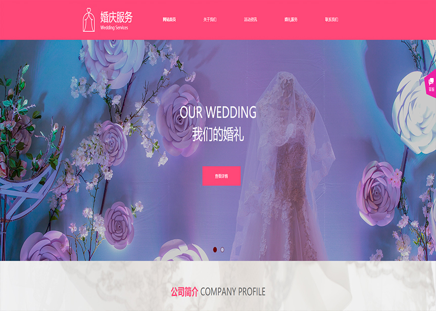 網(wǎng)站模板名稱:(帶手機(jī)版數(shù)據(jù)同步)自適應(yīng)婚禮婚慶類粉色通用網(wǎng)站模板