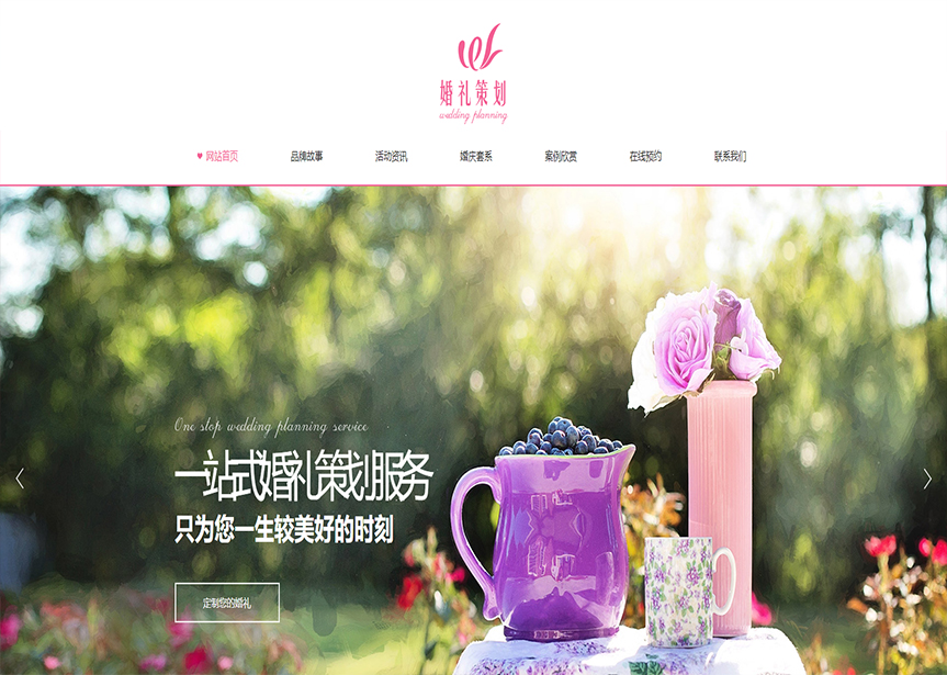 網(wǎng)站模板名稱:(帶手機(jī)版數(shù)據(jù)同步)自適應(yīng)婚禮婚慶類粉色網(wǎng)站模板