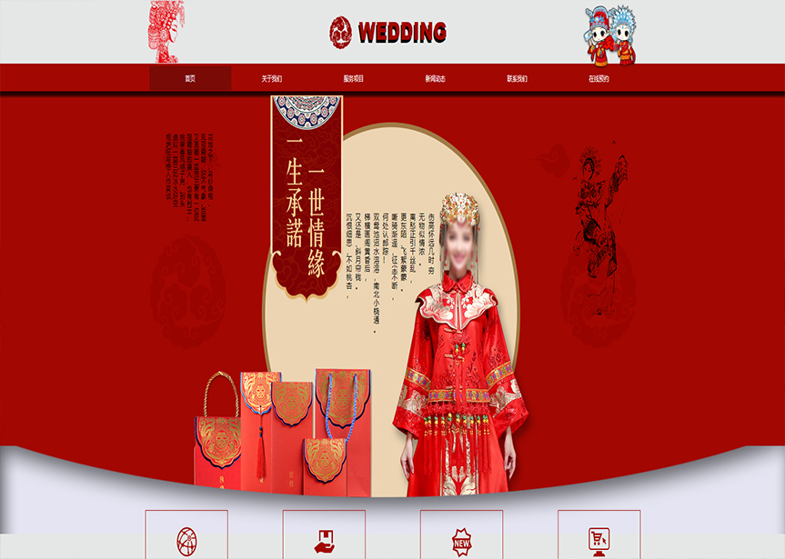 網(wǎng)站模板名稱:(帶手機(jī)版數(shù)據(jù)同步)自適應(yīng)婚禮婚慶類紅色網(wǎng)站模板