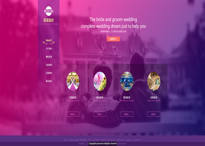 網(wǎng)站模板名稱:(帶手機版數(shù)據(jù)同步)自適應(yīng)婚禮婚慶類紫色網(wǎng)站模板