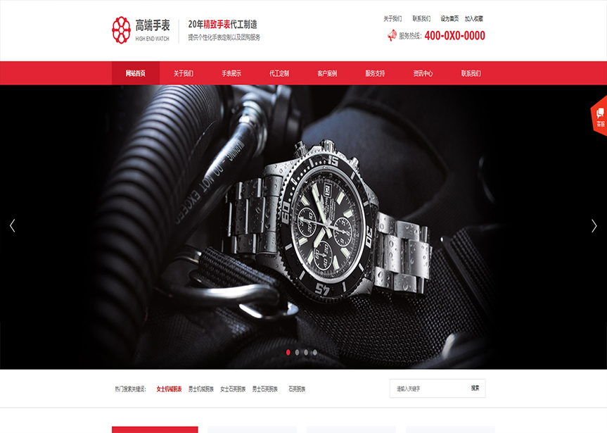 網(wǎng)站模板名稱(chēng):(帶手機(jī)版數(shù)據(jù)同步)自適應(yīng)鐘表類(lèi)紅色網(wǎng)站模板