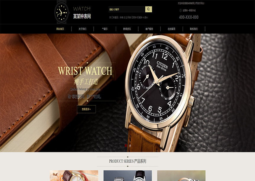 網(wǎng)站模板名稱:(帶手機版數(shù)據(jù)同步)自適應鐘表類金色網(wǎng)站模板