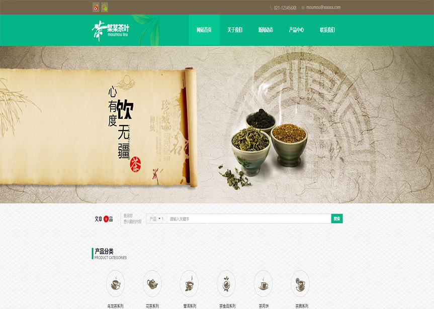 模板名稱:(帶手機版數據同步)自適應茶葉類綠色網站模板