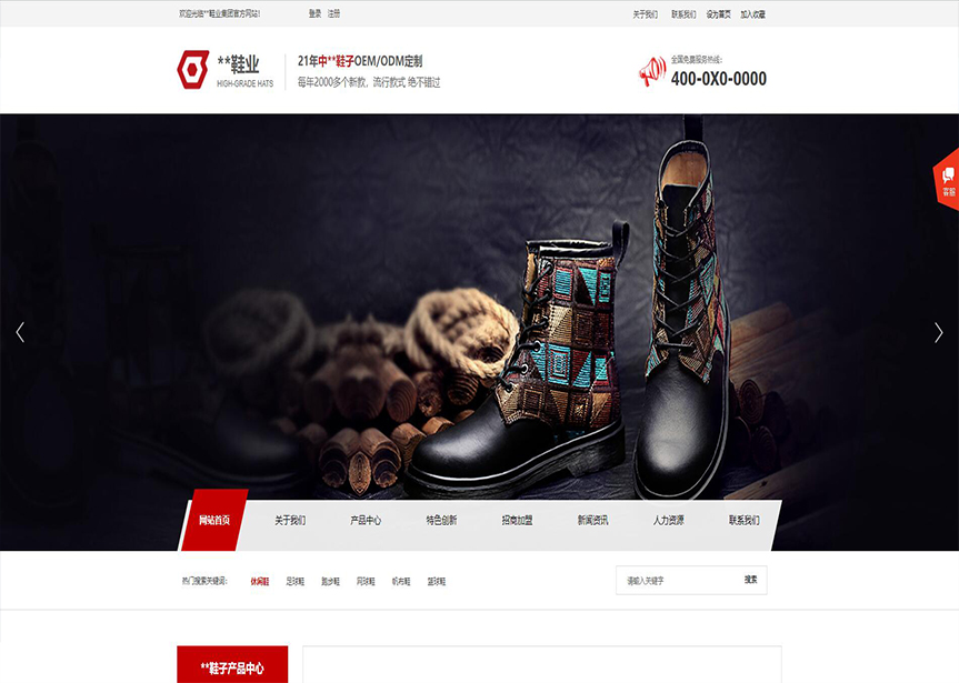 模板名稱:(帶手機(jī)版數(shù)據(jù)同步)自適應(yīng)鞋帽類紅色網(wǎng)站模板