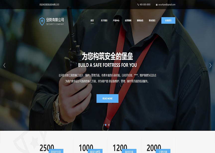 模板名稱:(帶手機(jī)版數(shù)據(jù)同步)自適應(yīng)安防監(jiān)控器材類藍(lán)色網(wǎng)站模板