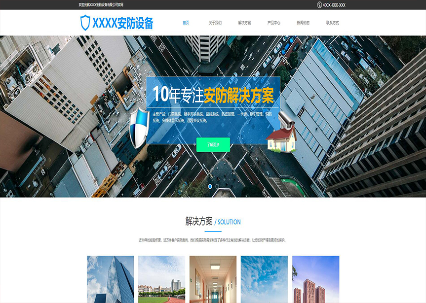 模板名稱:(帶手機(jī)版數(shù)據(jù)同步)自適應(yīng)安防監(jiān)控器材類藍(lán)色網(wǎng)站模板