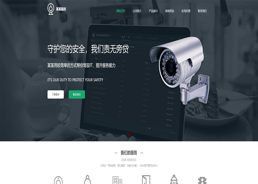 模板名稱:(帶手機(jī)版數(shù)據(jù)同步)自適應(yīng)安防監(jiān)控器材類綠色網(wǎng)站模板